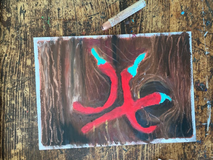 At the moment, I think I’m working with three or four different puzzles all jumbled together with a few corner pieces laid down but floating.  I suppose the frustration is justified.  But also, it makes me realise there’s only one way through, to work on each unique puzzle piece—like each blade of painted grass in the painting at my office—and find the best place for it.  Also, settle in. Put frustration aside. Instead, think of longing as commitment, dedication, discovery. This could take a while.
