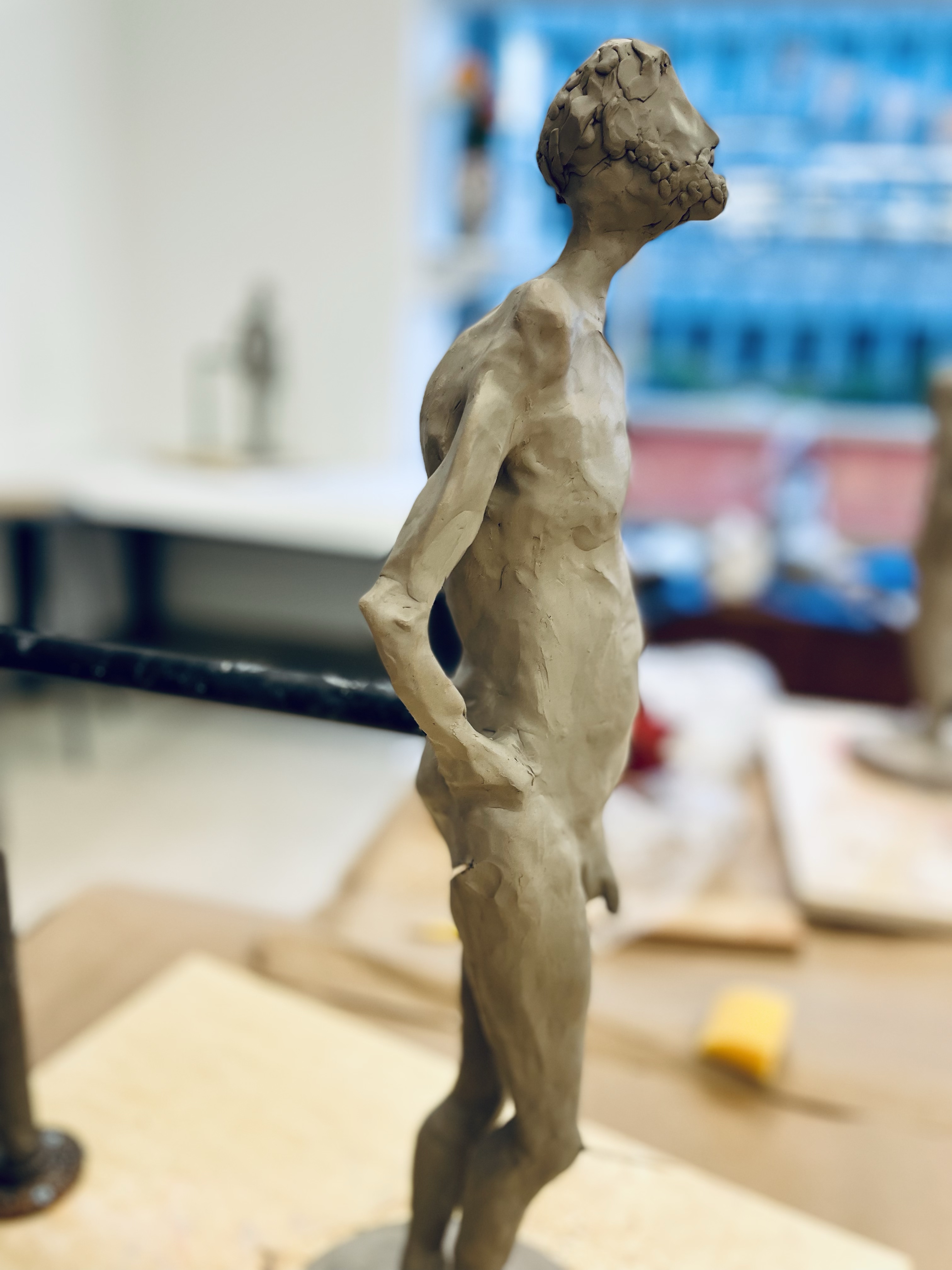 Here are some images of my completed sculpture right before the form was destroyed, the clay pulled from the support and returned to the plastic bag to be used to make something entirely different another day. It was a good lesson and a lot of fun. Thank you and credit to my good friend and colleague, JB, for the photographs.