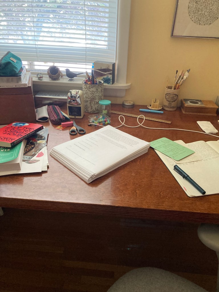 This post is too long. This month has been wretched[9]. I decided to print out the pieces I’ve written as part of the long form project, “to see” the extent of material I have. I was stunned to discover it’s 208 pages, 74, 385 words long. This doesn’t include more recent writings towards this project, nor does it include parts written into ten plus years of notebook writing. Initially, I felt proudly amazed I have so much material to work with…then I spiralled …I can’t see where it’s going, how to piece it together…I am floating blind again. Still.