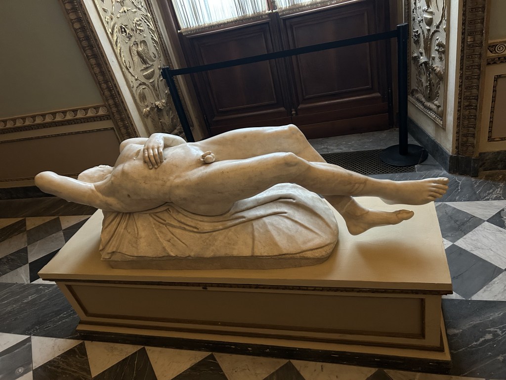 - Dying Niobid, Roman Art, 2nd century CE, the male figure is depicted on the ground in agony, struck by the arrows shot by the sons of Latona. For some reason it was the perfection of the figure’s legs and feet that really moved me. How they’re suspended in the air, as if, were I to reach out to stroke a calf, I might have felt the warmth of life depart the body. ↩︎