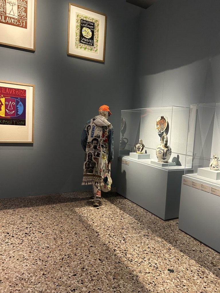Here’s a picture of a person wearing an outfit that was just as beautiful and could have been part of the Picasso exhibit. We gazed at the same painting for a long time, standing side by side, and I really wanted to tell him how impressed I was with his outfit. But, I was too shy to say so.