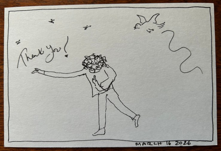 [1] Serendipity. Was going to link to the shlocky music they play when someone’s Oscar speech has gone on too long, but instead I look up Chloé Zhao’s acceptance speech at the Movies For Grown Up Awards with AARP for her film adaptation of Hamnet (book written by Maggie O’Farrell). Zhao’s speech is beautiful. Humble. From the heart. And she communicates exactly what I am trying to write about here. Such a delight to discover this. Do take the 3 minutes, listen to her voice. Here’s the link again. I have not yet seen the film…I have heard it is very beautiful. Knowing the story, I’m choosing to watch the film when I have the space and time to cry.