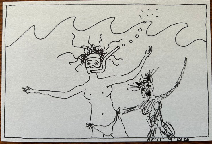 [5] I’m also practicing “writing silly” …not always, but sometimes, in response to the writing prompts we work through each week in the writing sessions I facilitate (volunteer), I try to let myself respond with humour and even ridiculousness (e.g., How to walk among humans, when you’re an alien. A multiple-choice test). In these sessions, there’s a live audience responding, like, actually saying how they feel about the writing, in real time and we enjoy laughter together, there’s delight…there’s an instant relaxation when a roomful of adults experience childishness (not in a puerile way, but in that innocent state of wonder or in the way of that underdeveloped sense of understanding that can be so charming with how children view the world) or self-deprecation (I’m good at this). A recognition. A vulnerability. I’m practicing this…cause my project needs it…it’s the oxygen it breathes. And also, because I’m such a serious fucker too much of the time…so much, I almost feel like I have a split personality. No, of course, not diagnosably.